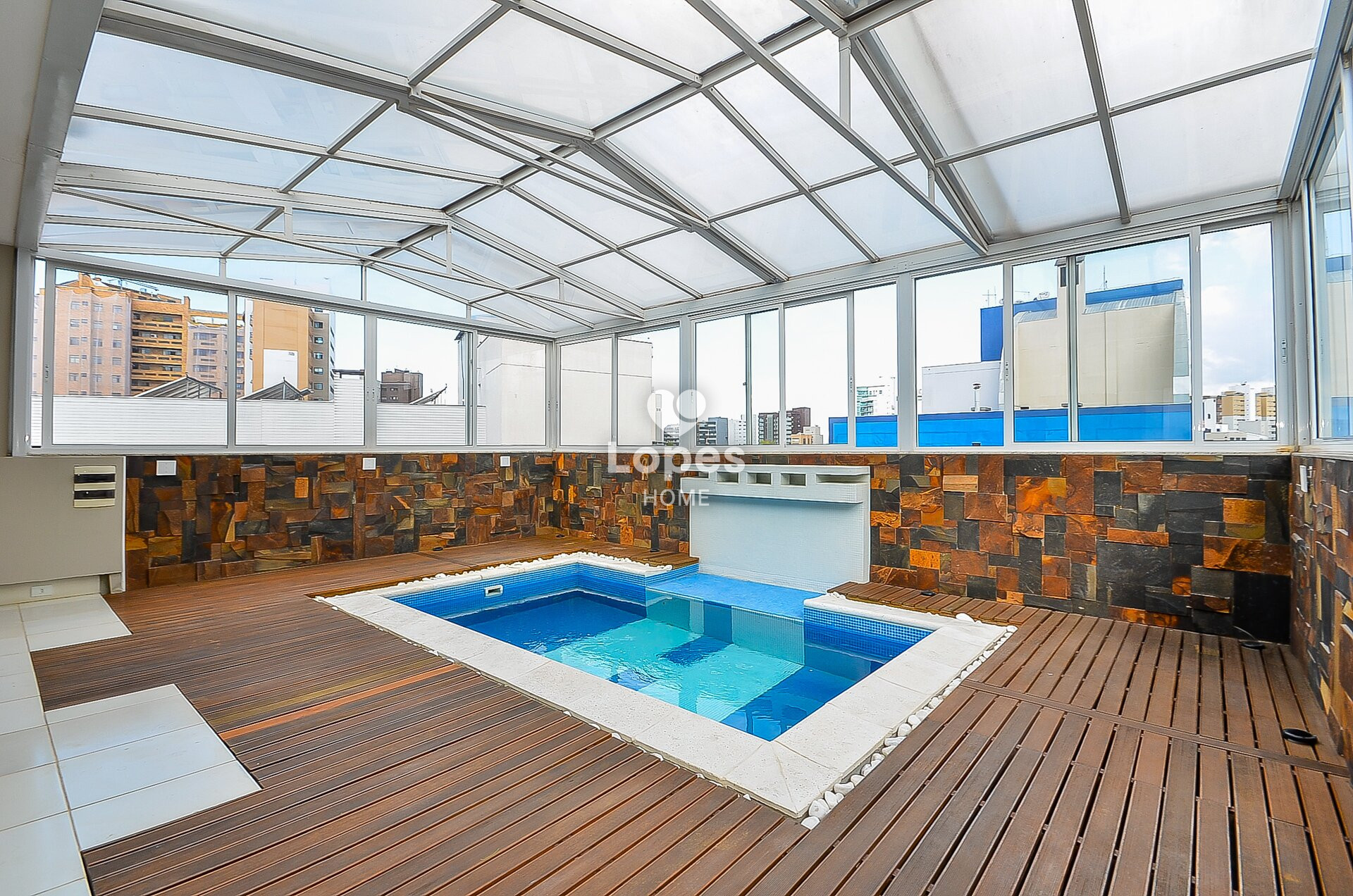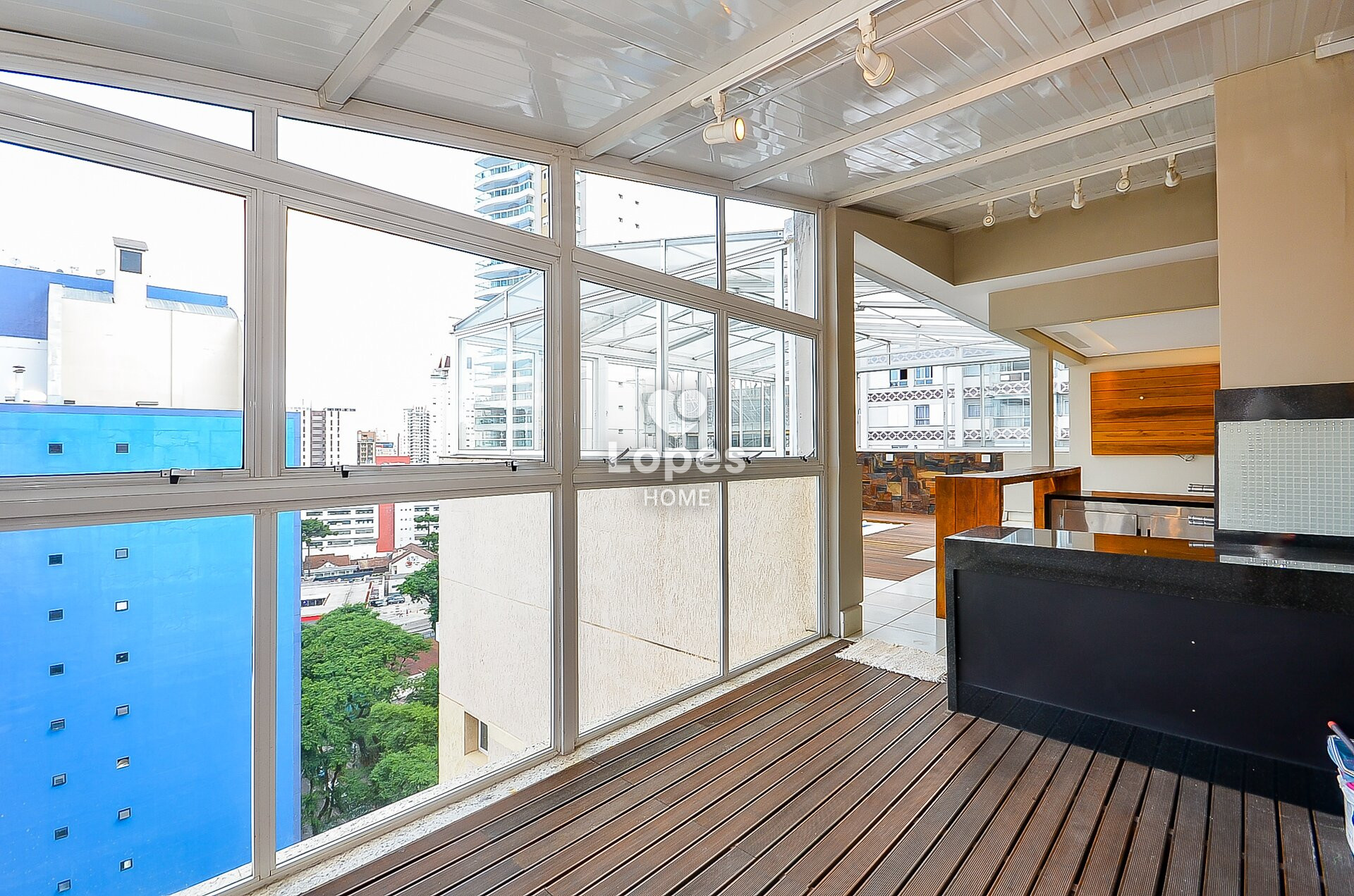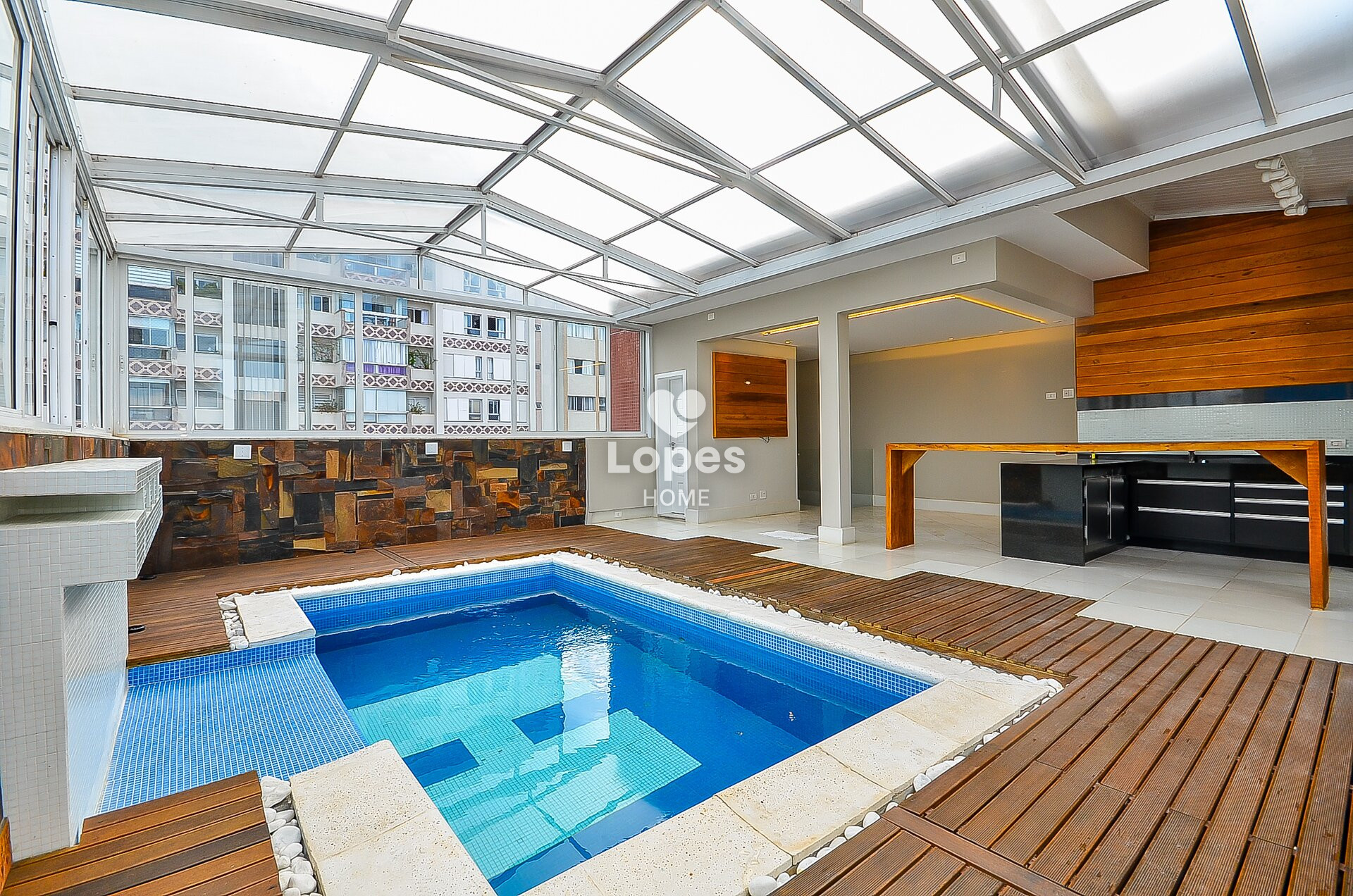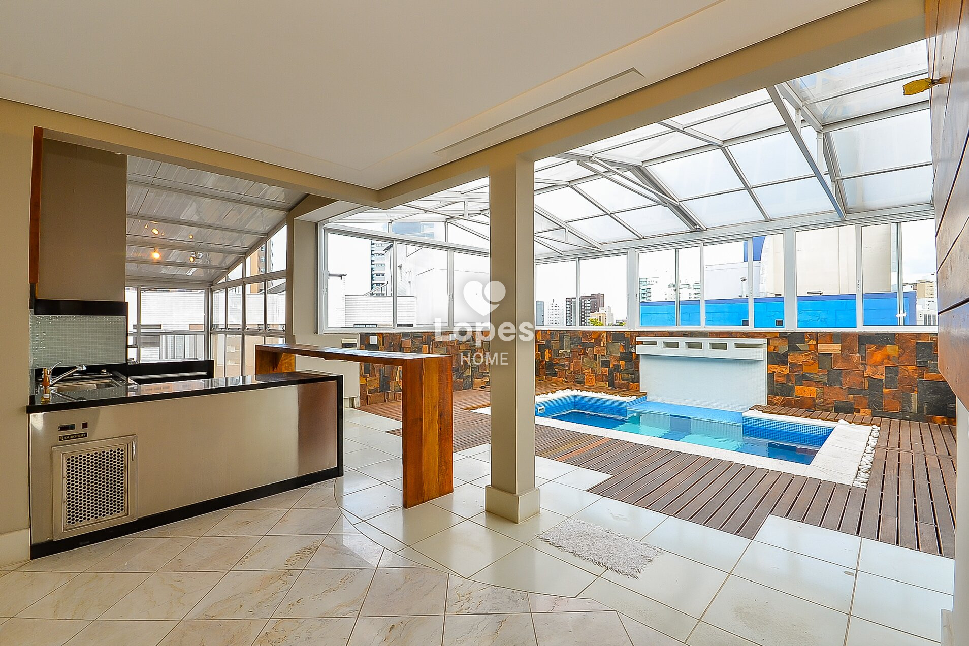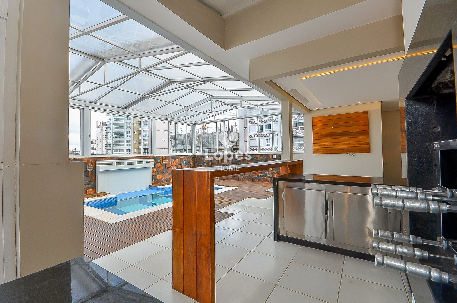 Amplo terraço coberto com teto retrátil