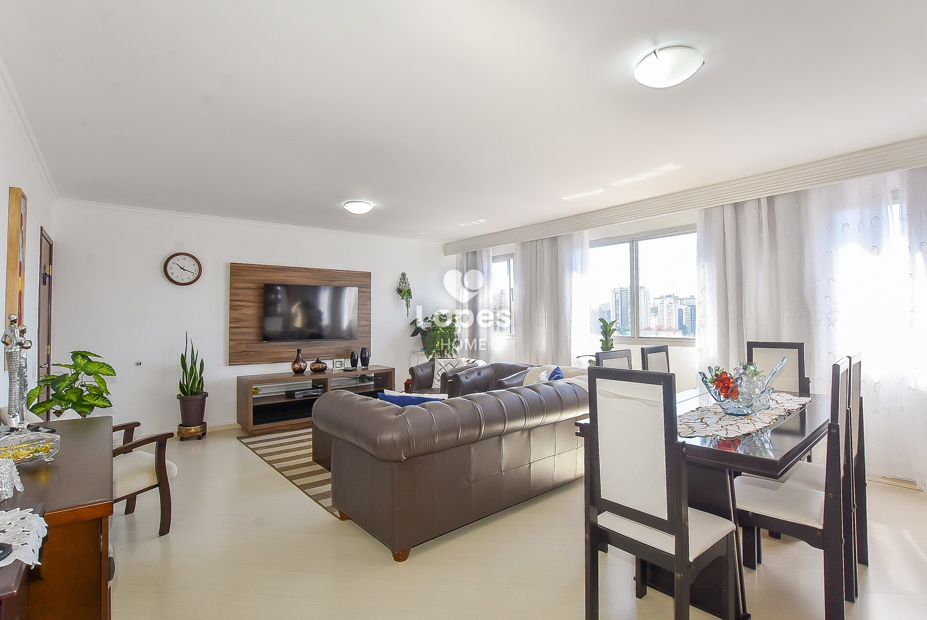 Salas de estar e jantar integradas, perfeitas para receber com conforto e elegância.