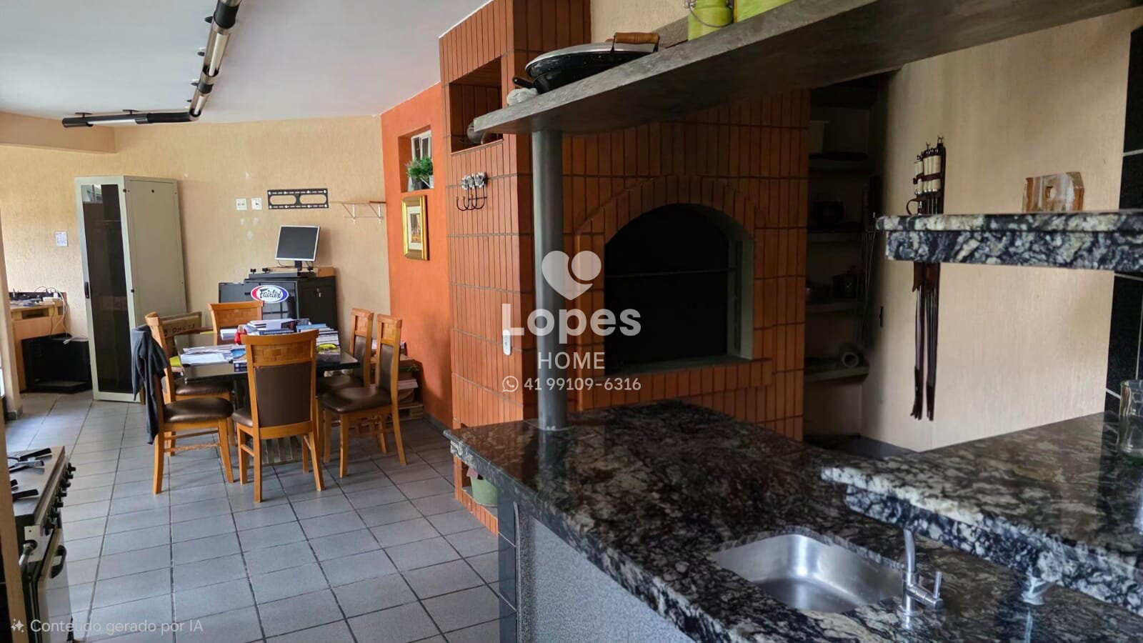 Na área externa e de apoio, o imóvel oferece até 8 vagas de garagem, sendo parte coberta, garantindo comodidade e segurança.